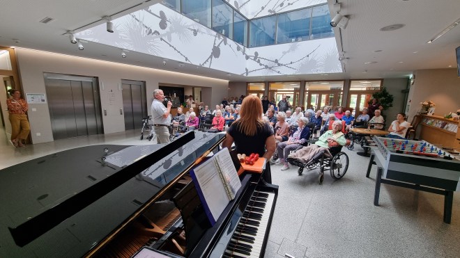 Po obědě jsme už zamířili do Bernu, též tradičně do centra Mattenhof. Hodinové vystoupení v sále s krásnou akustikou a koncertním křídlem bylo předposledním z celého našeho turné.