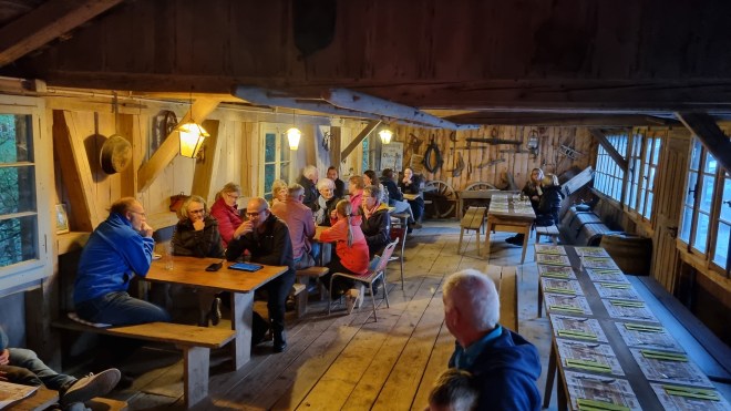 Po rychlém zabalení všeho aparátu jsme se vydali na zpáteční cestu do Oberwaldu. Cílem ovšem nezvykle nebyla naše chata, ale sousedící hostinec, kde už na nás u stolů čekali první posluchači…